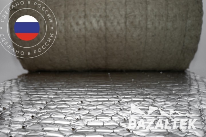 Мат Bazaltek euro-МПБ в обкладке алюминиевой фольгой и металлической сеткой, изготовлен согласно ТУ 5769-002-39397054-16. Удобно монтировать, так как сетка манье пришивается по всей длине мата.